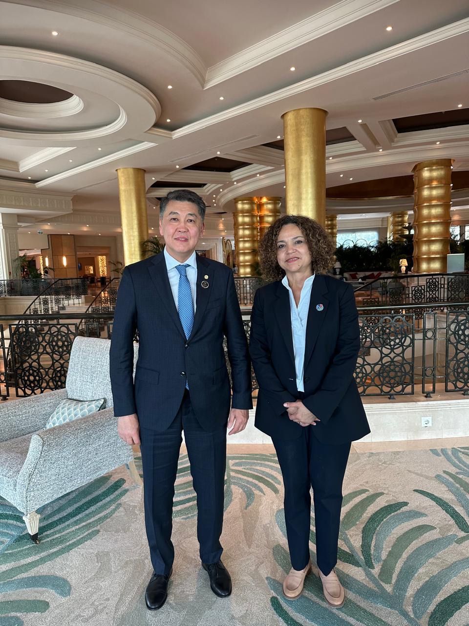 During these engagements, the Director General met with H.E. Mr. Jasem AlBudaiwi, Secretary-General of the Gulf Cooperation Council; H.E. Mr. Baghdad Amreyev, President of the Turkic Investment Fund ; Mr. Abdullah Eren, President of the Turkish Cooperation and Coordination Agency; and Ms. Andrea Meza Murillo, Deputy Executive Secretary of the United Nations Convention to Combat Desertification.