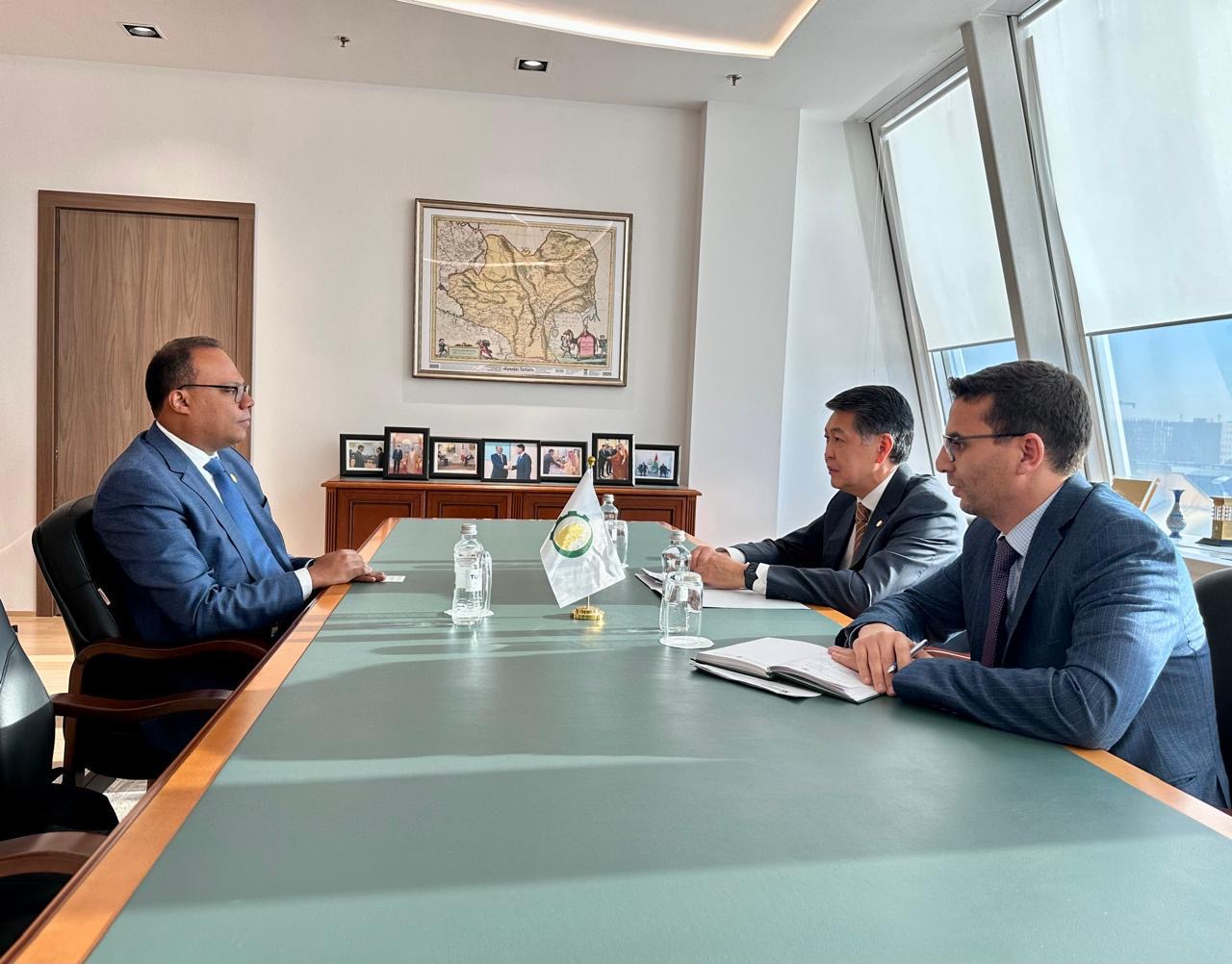 Astana, Kazakhstan - 20 November 2025 - The Director General of the Islamic Organisation for Food Security, Ambassador Berik Aryn, received the Executive Director of Murdoch University Dubai and Director of Strategic Partnerships for the MENA region, Dr. Mohamed Bamatraf, at its Headquarters in Astana.