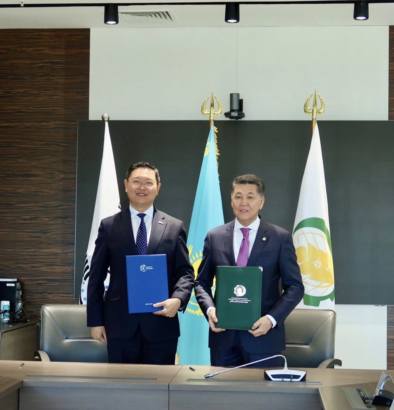 Astana, Republic of Kazakhstan – 28 April 2026 – H.E. Ambassador Berik Aryn, Director General of the Islamic Organisation for Food Security (IOFS), visited Astana IT University, where he held a meeting with Mr. Altair Akhmetov, Rector of the University, to discuss prospects for cooperation in the application of digital technologies and artificial intelligence in the agri-food sector.